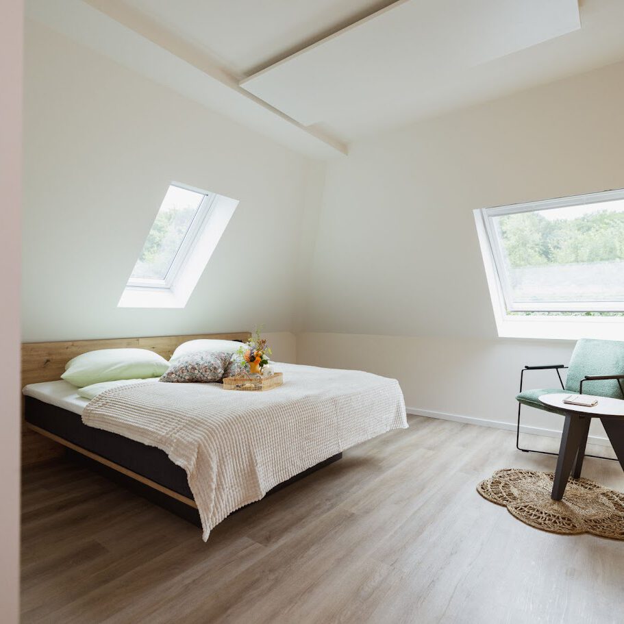 Die im Sommer 2024 neu eröffneten Appartements bieten auf komfortablen 54qm² ein modern eingerichtetes Wohnzimmer mit Ausziehsofa, ein Schlafzimmer, eine voll ausgestattete Pantryküche, sowie ein Duschbad mit Fußbodenheizung im Erdgeschoss. Im Obergeschoss befindet sich ein weiteres Schlafzimmer mit separatem WC. Jedes Appartement verfügt über eine eigene Terrasse & Flat-TV.